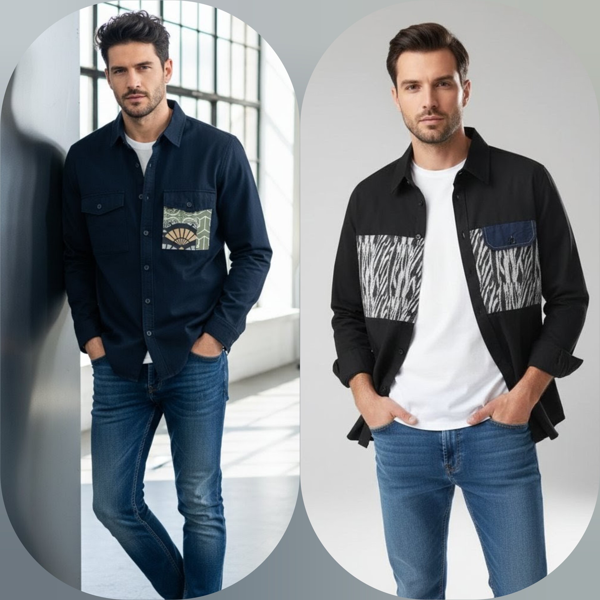 🔹বুকে আকর্ষণীয় ডিজাইন সাথে ডেনিম কাপড়ের পকেট স্টাইল (নেভি ব্লু শার্টের ডেনিম পকেট আছে) (কালো শার্টে ডেনিম ফ্ল্যাব পকেট নেই) সাথে মজবুত আকর্ষণীয় বাটন